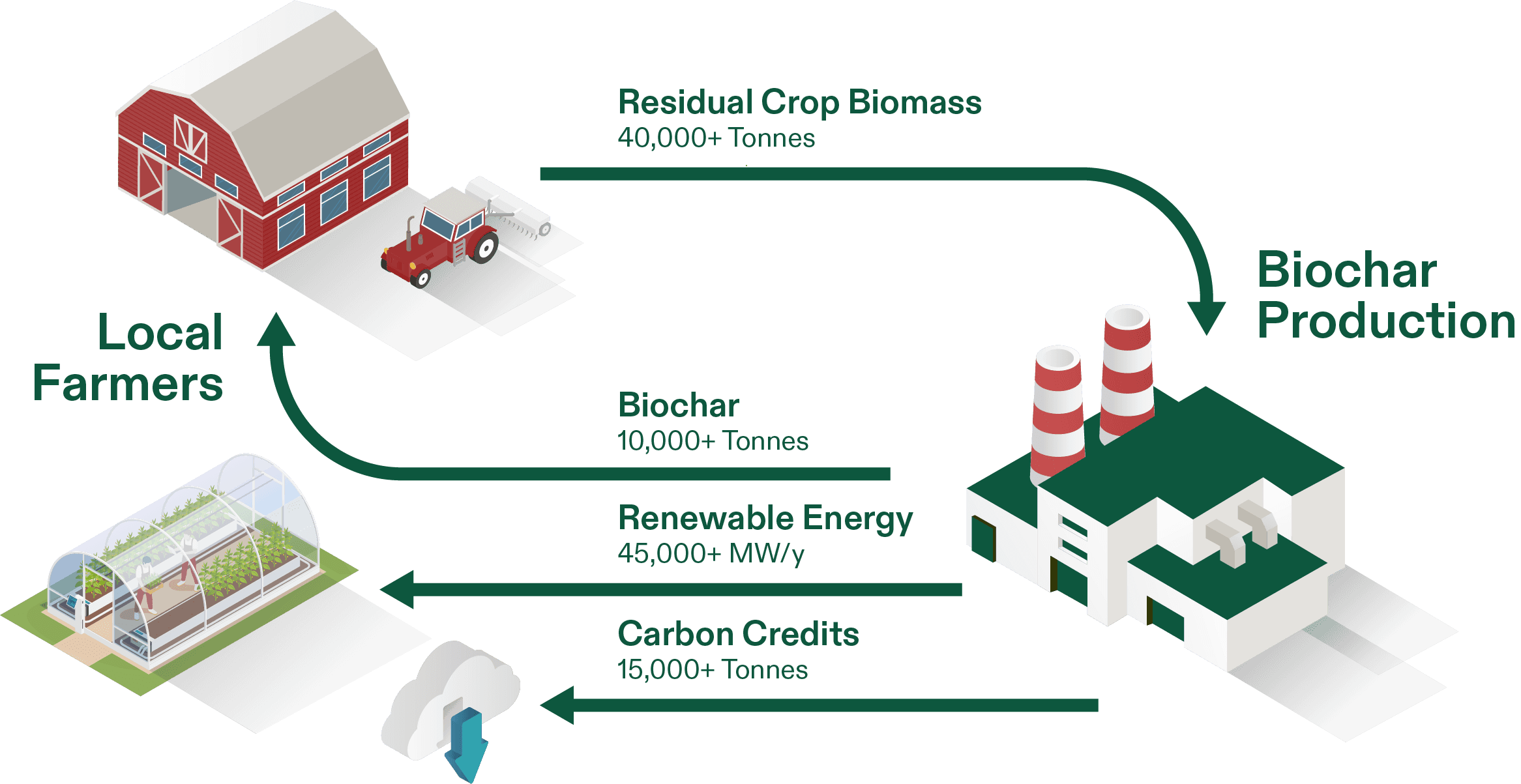 We help Canadian communities decarbonize by transforming biomass into valuable products—with a focus on biochar.
